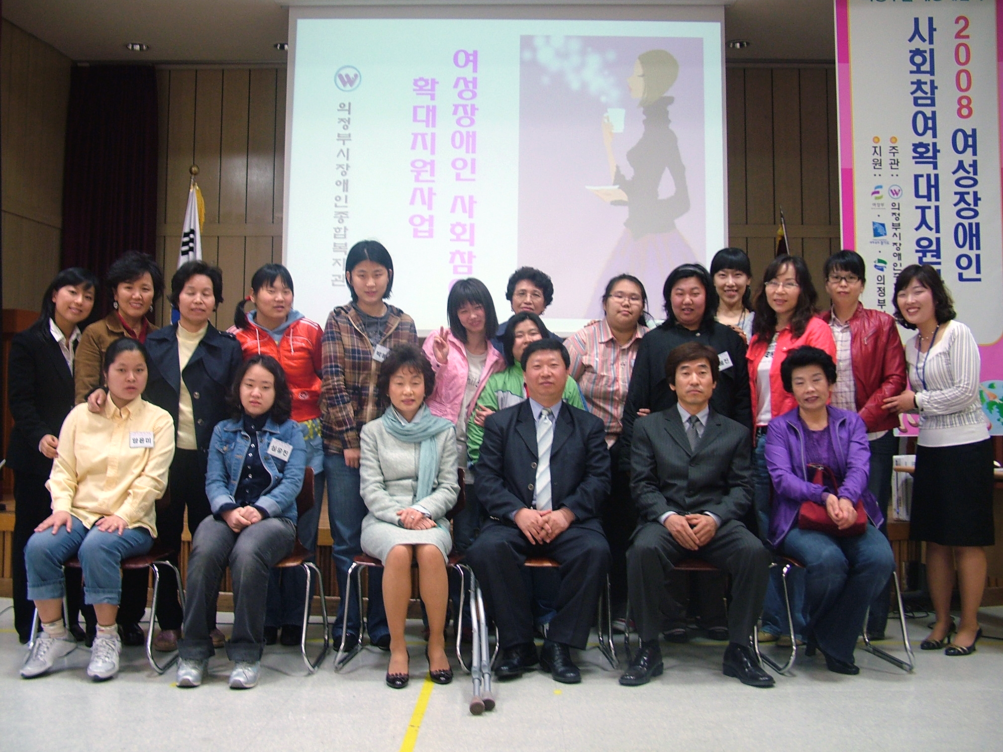24일 의정부시 장애인종합복지관에서 여성장애인 사회참여 확대지원사업 “여걸들의 좌충우돌 세상체험기”개강식이 개최되었다. 여성부. 경기도. 의정부시의 지원으로 실시되는 여성장애인 사회참여확대지원 사업을 통하여 여성장애인의 능력을 충분히 발휘하여 당당하게 자신의 활동영역에서 살아갈 수 있도록 기회를 마련된 자리로써 프로그램별 강사와 참석한 지적여성장애인들과의 인사의 시간을 가졌으며, 개강식 이후 밸리댄스 등으로 즐거운 시간 속에 진행되었다. 개강식에 참석한 한 여성장애인의 가족은 “자녀들이 이렇게 다시 한번 사회에 참여할 수 있는 기회가 생겨 감사하다”는 말과 함께 눈시울을 적시기도 했다. 2008.04.25 김동영기자