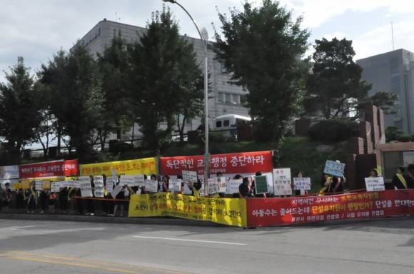 “교육청은 독단적인 교육행정 즉각 중단하라.”