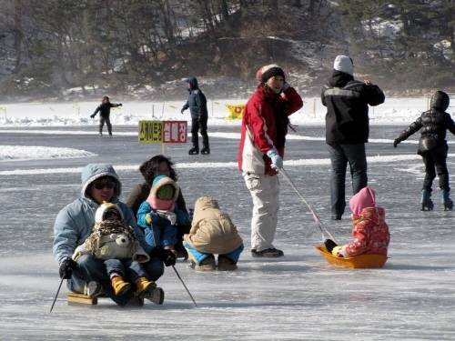 또한 산정호수에서 개최되는 “썰매축제”장에서는 호수기차, 얼음썰매, 빙상자전거, 스케이트, 얼음바이크, 얼음낚시등 다양한 체험장으로 이루어져 있다. 산정호수의 얼음위를 누비는 호수기차는 산정호수에서만 즐길 수 있는 스릴만점의 겨울놀이며 가족, 연인과 함께 탈수 있는 빙상자전거는 또 다른 겨울의 추억을 만들 수 있는 시간이 될 것이다. 산정호수의 넓은 빙상장에서 타는 얼음 바이크는 어른들만을 위한 색다른 경험을 할 수 있는 체험프로그램으로 많은 관광객들에게 각광을 받고 있다
