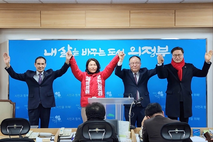 전희경 후보는 "국민의힘 총선 승리를 위해 힘을 모아 주신 김정겸 예비후보께 감사의 말씀드린다"며 "저는 김 예비후보의 헌신을 본받아 2004년 총선 이후 20년간 민주당에 빼앗긴 의정부갑을 반드시 탈환하는 것으로 지지에 보답하겠다"고 다짐했다.