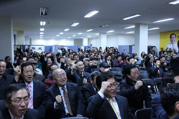문희상 후보는 인사말을 통해 “김대중 대통령과 노무현 대통령이 꿈꾼 세상을 만들기 위한 노력이 이명박 정부가 하루아침에 엉망진창으로 만든 걸 보면서 그분들을 다시 뵐 면목이 없어서 국회의원에 입후보했다”고 역설했다.