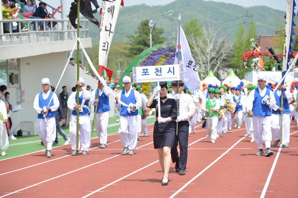 개회식 통고 후 3일간 뜨거운 열전에 참가하는 31개 시․군 선수단이 차기 개최지인 화성시부터 이번 도민체전 개최지인 포천시까지 차례로 관람객의 환호 속에서 입장했다.