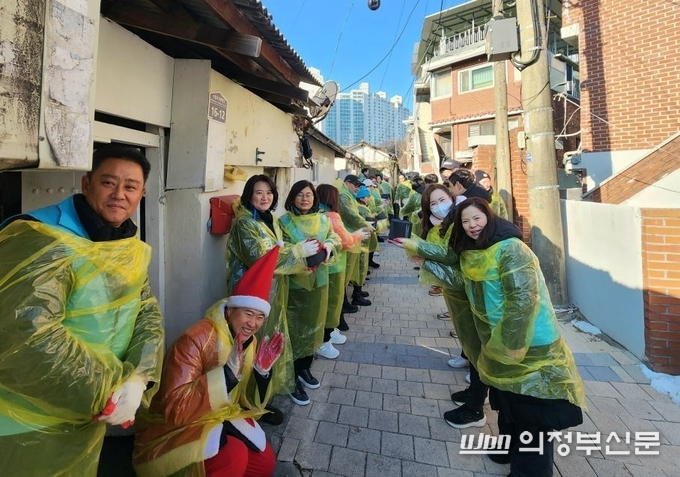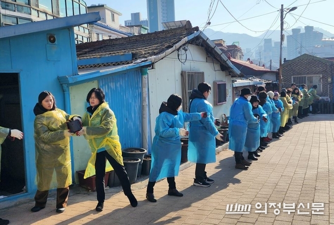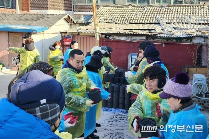 기업 및 소상공인들로 구성된 의정부명지회(회장 이호직)가 11일 오전 의정부 호원동 신흥마을 내 에너지 소외계층 4가구를 대상으로 '사랑의 연탄나눔' 봉사활동을 펼쳤다.