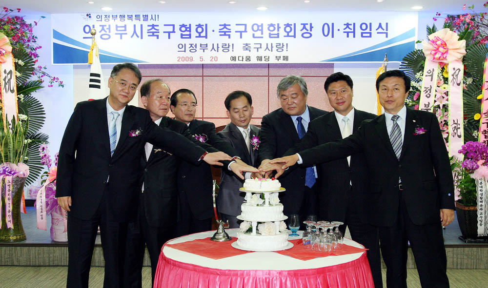 의정부시축구협회·축구연합회는 20일 예다움부페에서 회장 이·취임식을 가졌다. 이날 이·취임식에선 지난 4년간 의정부시축구협회·축구연합회를 이끌었던 임희창 회장이 자리에서 물러나고 신임 김연균 회장이 공식 취임했다.