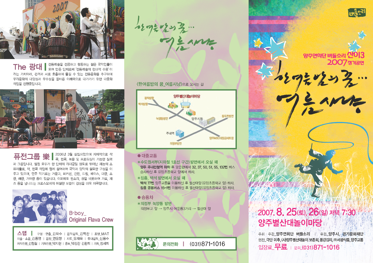 양주 연희단 버들소리가 지난 25일부터 26일까지 양주별산대놀이마당에서 <한여름밤의 꿈 - 여름사냥> 2007 버들소리연희단 정기공연이 열렸다.