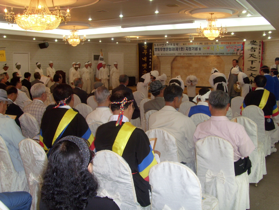동두천지역에 전승되어 내려오는 동두내옛소리가 지난달 15일 동두천시 무형향토문화재 제1호 지정을 기념하는 축하공연이 5일 동두천농협 대연회장에서 개최됐다.