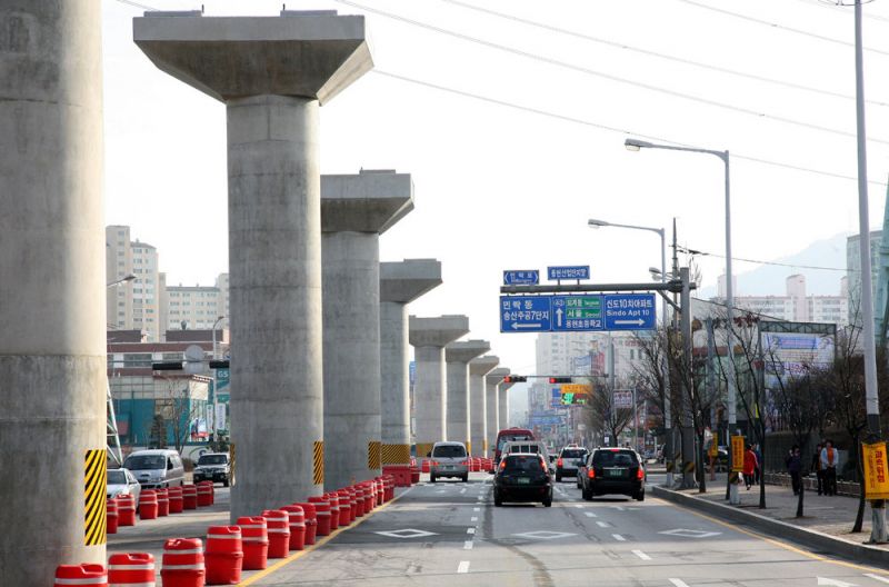 의정부 경전철은 1-3공구 교각 332개중 126개가 완료되는 등 지난해 말 현재 23.1%의 공정율을 보이고 있다.