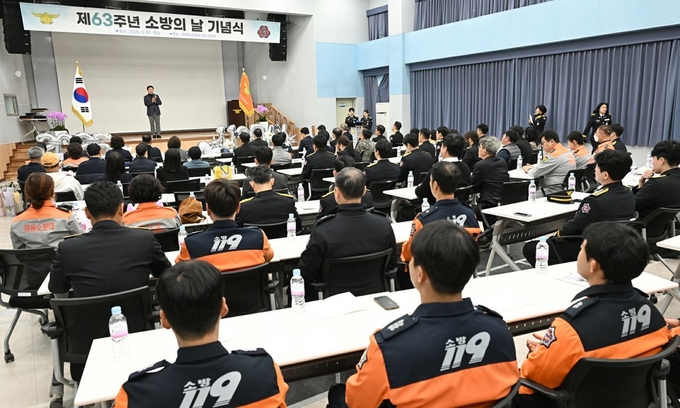 의정부시가 제63주년 소방의 날을 맞아 재난 현장에서 시민의 생명과 재산을 지키는 소방 관계자들의 노고를 격려했다.