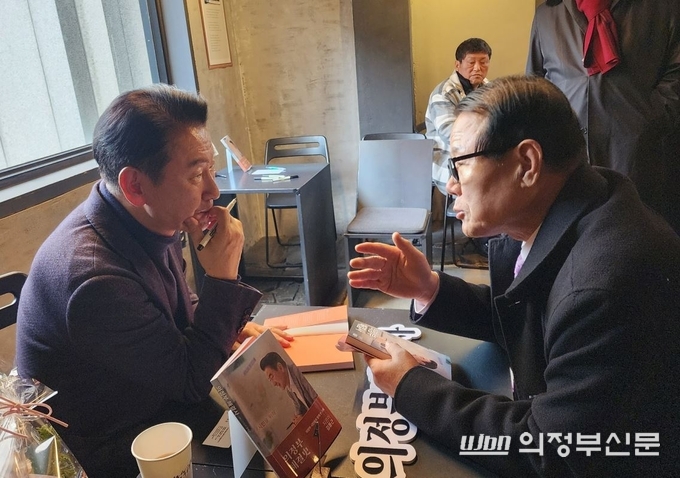 의정부 시내 청춘거리의 한 커피숍이 지난 16~17일 이틀간 시민과 시장이 마주 앉아 대화를 나누는 출판기념회장으로 꾸며졌다. 화환과 단상 대신 테이블 사이에서 오간 대화가 중심이 된 이번 행사는, 김동근 의정부시장이 그간 강조해 온 '현장 소통' 기조를 상징적으로 보여준 장면으로 평가되고 있다.