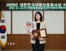 의정부시의회 강선영 의원이 지난 24일 주민 삶의 질 향상과 지역사회 발전에 기여한 공로를 인정받아 '대한민국지방의정봉사상'을 수상했다. 대한민국지방의정봉사상은 대한민국시군자치구의회의장협의회가 주관하는 전국 단위 포상으로, 성실한 의정활동과 주민을 위한 봉사정신, 정책적 성과 등을 종합적으로 평가해 수여된다. 강 의원은 청년·여성·중장년·아동·장애인 등 사회적 약자를 위한 조례 제정에 힘써 제도적 기반을 마련해 왔으며, 정책 사각지대에 놓이기 쉬운 계층의 목소리를 의정활동에 적극 반영해 실질적인 변화를 이끌어 왔다는 평가를 받았다. 또한 지역 곳곳을 직접 찾아 시민 의견을 수렴하는 현장 중심 의정활동과 행정사무감사를 통한 책임 있는 견제 활동에서도 성과를 냈다. 지역 문화예술과 기후·환경 분야에 대한 지속적인 관심을 바탕으로 시민의 문화 향유권 확대와 지속 가능한 도시 환경 조성을 위한 정책 활동을 이어온 점도 이번 수상의 배경으로 꼽힌다. 이러한 생활 밀착형 조례 활동과 미래세대를 고려한 정책적 시각이 종합적으로 높은 평가를 받았다. 강선영 의원은 수상 소감을 통해 "이번 상은 개인에 대한 평가가 아니라, 시민 한 분 한 분의 삶을 더 나아지게 만들기 위해