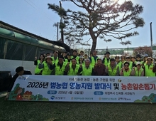 농번기를 앞두고 농촌 인력 부족 해소를 위한 범농협 차원의 지원 활동이 본격적으로 시작됐다. 농협중앙회 의정부시지부와 의정부농협은 지난 13일 의정부시 신곡동 소재 사과 재배 농가에서 '2026년 의정부시 범농협 영농지원 발대식'을 개최하고 농촌 일손돕기 활동을 실시했다. 이날 행사에는 의정부시 도시농업과를 비롯해 농협중앙회, 의정부농협, 농협은행, 농협자산관리, 농협네트웍스 등 범농협 계열 임직원으로 구성된 '함께나눔 봉사단'과 의정부농협 여성단체인 고향주부모임, 농가주부모임, 영농부녀회 회원 등 30여 명이 참여했다. 참석자들은 본격적인 영농철을 앞두고 농촌 일손지원 필요성에 대한 공감대를 형성하고 지원 의지를 다지는 발대식을 진행한 뒤, 사과 꽃 솎기 작업과 농가 주변 환경정비 등 현장 중심의 봉사활동을 펼쳤다. 이번 활동은 고령화와 인구 감소로 심화되는 농촌 인력난을 완화하기 위한 실질적 지원 차원에서 마련됐다. 남궁평 농협중앙회 의정부시지부장은 "이번 발대식을 계기로 지역 농가의 안정적인 영농을 뒷받침하고 풍년 농사를 기원한다"며 "앞으로도 범농협 함께나눔 봉사단을 중심으로 일손 부족을 겪는 농가 지원에 지속적으로 나설 계획"이라고 밝혔다. 김명수