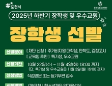 포천시청소년재단(이사장 백영현)이 청소년의 학업 지속과 재능 성장을 지원하고, 지역 교육 발전에 헌신한 교원을 격려하기 위한 '2025년 하반기 장학생 및 우수교원 선발'을 추진한다고 24일 밝혔다. 이번 선발은 ▲주거비 지원 대학생 ▲검정고시 ▲만학도 ▲초·중·고 특기생 ▲우수교원 등 5개 분야에서 진행되며, 총 295명과 단체 15개 팀을 선정해 4억 9800만 원 규모의 장학금을 지원할 예정이다. 주거비 지원 대학생, 만학도, 검정고시 장학생은 11월 4일까지 포천시청소년재단 방문 또는 등기우편으로 신청 가능하다. 특기생 및 우수교원 부문은 교육청 추천을 통해 선발하며, 신청 마감은 11월 3일이다. 자세한 사항은 교육청 공문 및 포천시청소년재단 누리집 공지사항에서 확인할 수 있다. 재단 관계자는 "이번 장학사업은 청소년의 미래 역량을 키우고, 지역 교육에 헌신한 교원의 노고에 보답하기 위한 취지"라며 "앞으로도 지역 인재 육성과 교육 환경 개선을 위한 다양한 지원 사업을 지속하겠다"고 말했다.