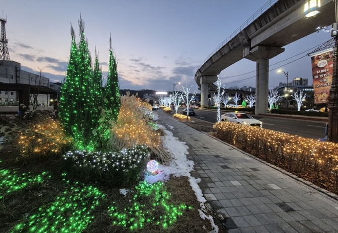 행복누리공원은 철도 고가 하부 공간을 겨울 낭만 공간으로 탈바꿈시킨 '반전 명소'다. 19일부터 25일까지 '행복누리 선물트리'가 설치돼 주민이 만든 조형물과 따뜻한 조명이 어우러진 특별한 겨울 풍경을 선사한다.