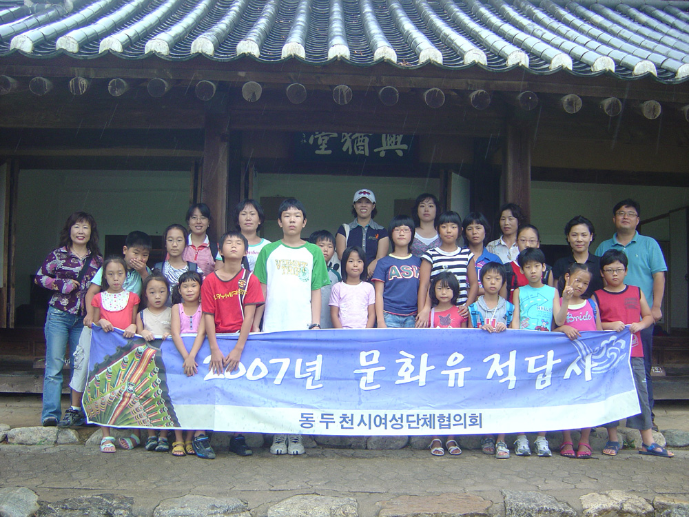 동두천시 여성단체협의회 주관으로 실시하는 2007 제5회 자녀와 함께하는 문화유적 답사를 관내 거주 보호자 자녀 40여명이 참여한 가운데 실시하였다.