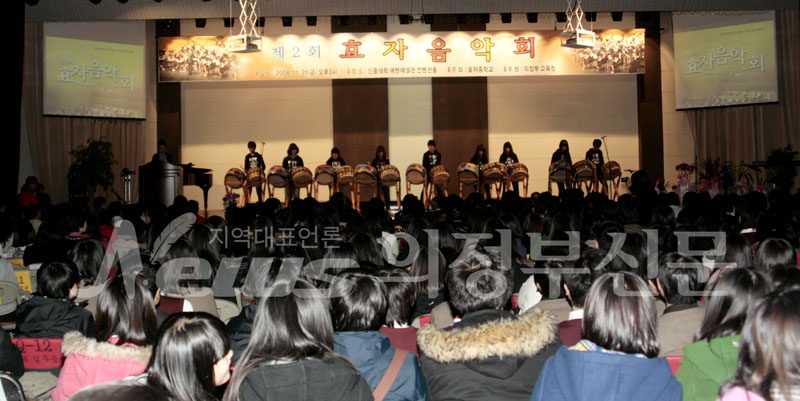 효자오케스트라 창단1주년을 기념하기 위해 열린 제2회 효자음악회가 21일 신흥대학 에벤에셀관 컨벤션홀에서 의정부교육청 홍대희 장학사, 의정부예술의전당 이진배 사장, 의정부시태권도협회 신용철 회장, 효자중학교 이부순 교장 및 학생 300여명이 참석하 가운데 열렸다.