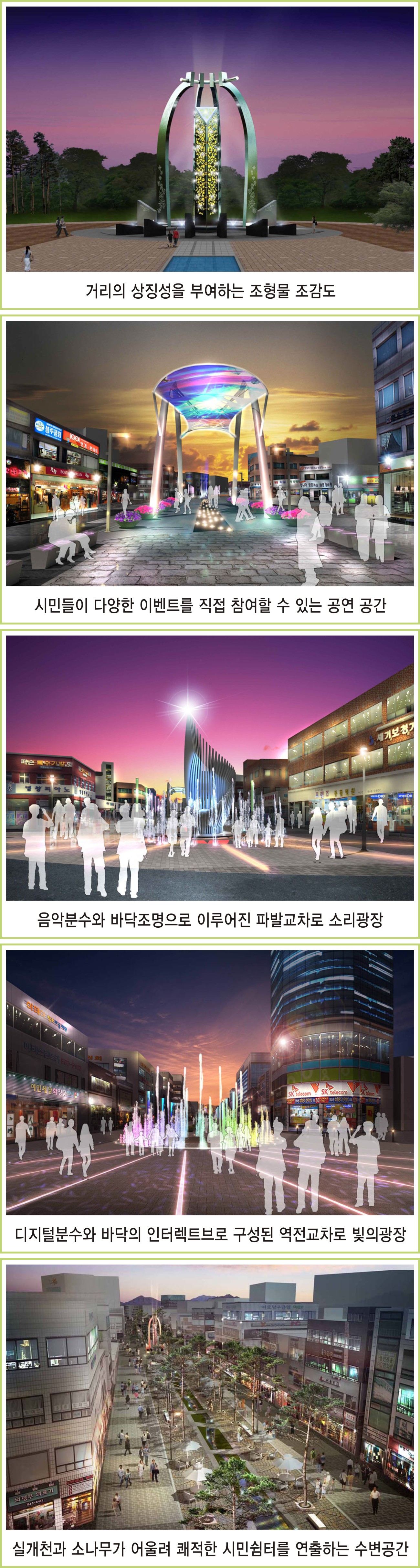 특히 역전교차로에는 음악에 따라 모양을 바꾸거나 조명을 통해 다양한 볼거리를 제공하는 디지털 분수가 설치되고 파발교차로에도 음악 분수와 함께 도로 바닥은 형형색색의 조명이 비추게 된다.