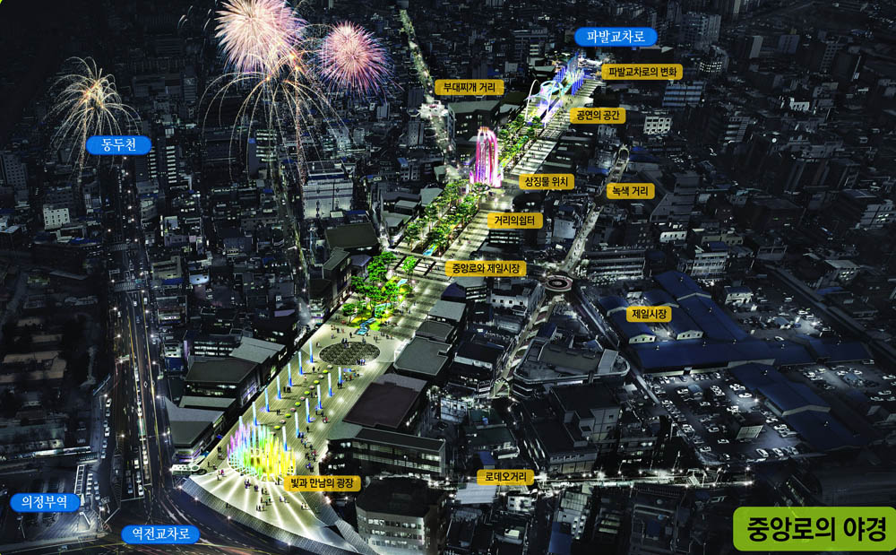 이 모든 것은 서울 청계천이나 일산 라페스타, 웨스턴돔, 일본 도쿄의 이케부쿠로 선샤인 등의 모습이 아니다. 바로 의정부 중앙로의 모습이다.