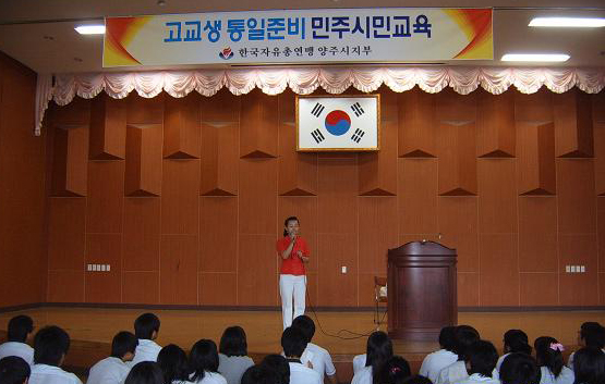 한국자유총연맹 양주시 지부에서는 지난달 25일 덕계고등학교 다목적실에서 고교생 450명을 대상으로 2007년도 고교생 민주시민교육을 실시했다. 교육은 한국자유총연맹 교육문화단 성악가수 겸 안보강사로 활동하는 손경옥강사를 초빙 북한의 교육실상, 자유민주주의 체제의 중요성과 통일의 중요성에 대한 교육을 가졌다.