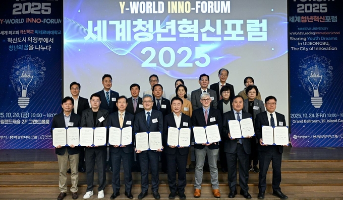 의정부시가 24일 아일랜드캐슬 그랜드볼룸에서 전 세계 청년 혁신가들이 한자리에 모인 '세계청년혁신포럼 2025(Y-World Inno-Forum)'을 성황리에 개최했다.