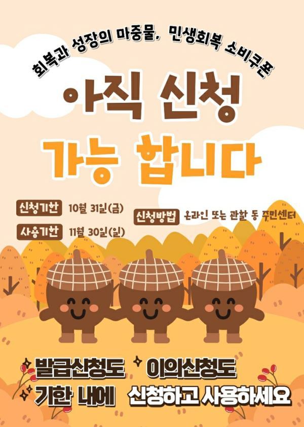 지급된 소비쿠폰은 11월 30일까지 사용 가능하며, 기간 내 미신청·미사용 금액은 자동 소멸된다.