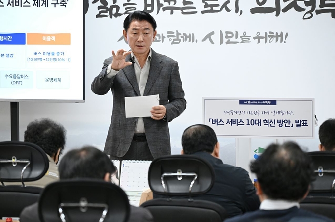 김동근 의정부시장이 시민 이동권을 전면 재설계하는 '버스 서비스 10대 혁신 방안'을 발표했다. 하루 평균 약 11만 명이 이용하는 버스를 도시 교통의 핵심 축으로 삼아 노선 구조와 운영 방식 전반을 손보겠다는 구상이다.