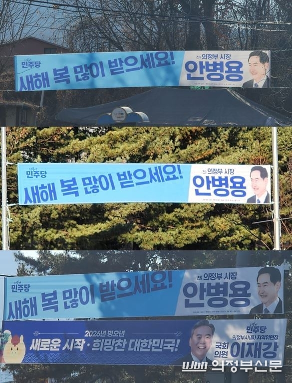 2일 본지 취재 결과, 의정부시의 경우 시장 출마 가능성이 거론되는 안병용 전 시장의 '신년 인사' 현수막이 시 전역에 걸쳐 유독 많이 설치된 것으로 확인됐다. 해당 현수막은 새해 인사 문구와 함께 전직 시장 경력과 얼굴 사진을 담은 형태로, 시내 주요 간선도로와 교차로 인근에 집중 게시되면서 논란을 키우고 있다.