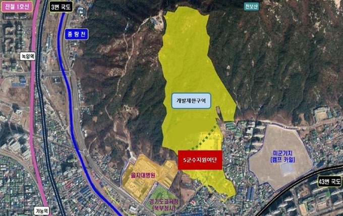 의정부시는 지난 2019년 12월 31일 경기도 의왕시에 사업장을 둔 A업체와 당시 군 병력이 주둔 중이던 '5군수지원여단' 부지의 이전 및 개발과 관련한 업무협약을 체결했다. 해당 부지는 금오동 426-1번지 일대 41만9681㎡(약 12만7000평) 규모로, 인근 '캠프 카일' 부지 면적의 세 배를 넘는다.