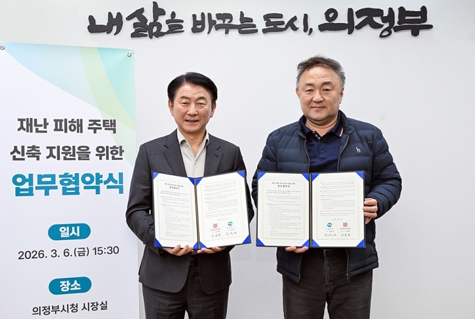 의정부시는 지난 6일 의정부지역건축사회와 '재난 피해 주택 신축 지원 업무협약'을 체결하고, 재난으로 주거지를 잃거나 피해를 입은 시민들의 조속한 생활 안정을 돕기 위한 협력 체계를 구축했다고 밝혔다.