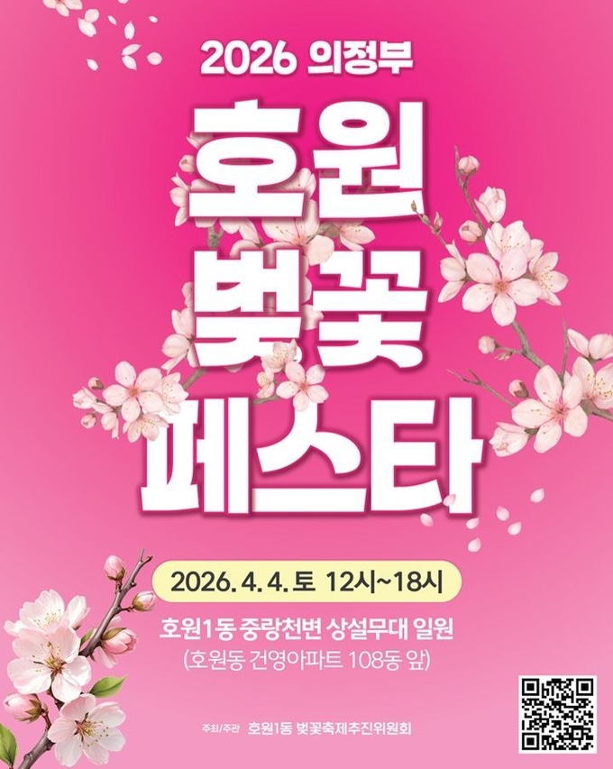 의정부시 호원1동주민센터(동장 강성수)는 오는 4월 4일 낮 12시부터 오후 6시까지 중랑천변 상설무대 일원에서 '호원 벚꽃 페스타'를 개최한다고 25일 밝혔다.