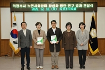 의정부시의회 의원 연구단체인 '의정부시 노인사회참여 방안 연구회'가 노인의 사회참여 확대를 위한 연구용역 결과를 집행부에 전달하며 정책 반영을 요청했다. 의정부시의회에 따르면 연구회는 18일 노인 관련 업무를 총괄하는 시 노인복지과에 연구용역 최종 보고서를 제출했다. 해당 연구회는 조세일 의원을 대표로 김연균 의원, 정미영 의원 등으로 구성돼 있다. 연구회는 고령사회로 접어든 의정부시의 현실을 반영해 노인의 사회참여 현황과 효과를 분석하고, 지역 여건에 맞는 정책 대안을 마련하기 위해 지난 5월부터 연구 활동을 시작했다. 이후 약 6개월간의 조사와 분석을 거쳐 지난 11월 연구용역을 마무리했다. 이번 연구에서는 노인의 사회참여 유형을 일자리, 자원봉사, 평생학습, 지역공동체 활동 등으로 세분화하고, 참여 확대를 위한 제도 개선 방향과 행정적 지원 방안을 제시했다. 단순한 복지 차원을 넘어 노인의 사회적 역할을 강화함으로써 삶의 질을 높이고 세대 간 연대를 촉진하는 데 초점을 맞췄다는 설명이다. 연구회는 보고서 전달과 함께 연구 결과가 실제 정책으로 이어질 수 있도록 집행부의 적극적인 검토와 협력을 요청했다. 향후 관련 부서와의 논의를 통해 제안된 방안을 단계